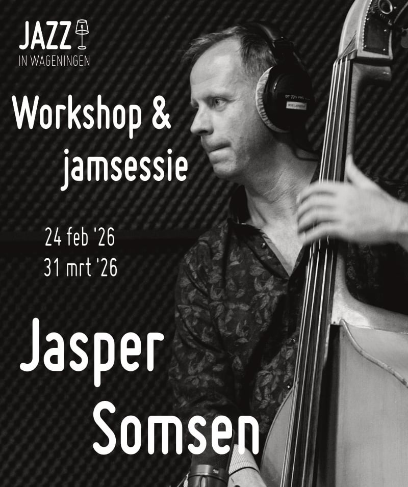 Op dinsdag 24 februari en dinsdag 31 maart wordt de workshop verzorgd door contrabassist Jasper Somsen. Echt waar! Onze eigen Wageningse wereldster komt - op veler verzoek - de workshop geven, en daar heeft hij veel zin in heeft hij Jazz in Wageningen verzekerd!